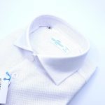Camicia bianca effetto maglia, filato excellent traforato (tessitura Monti).