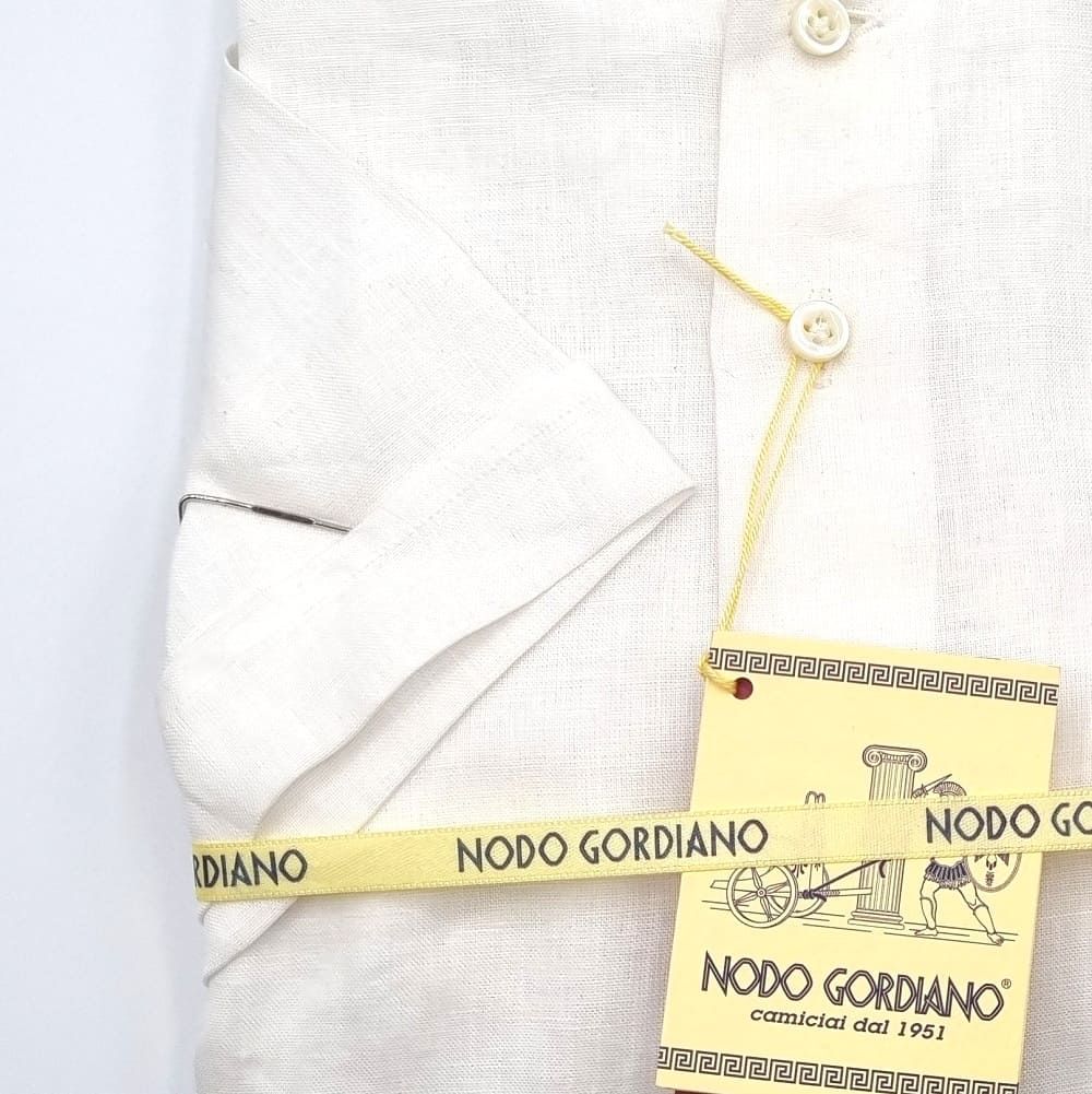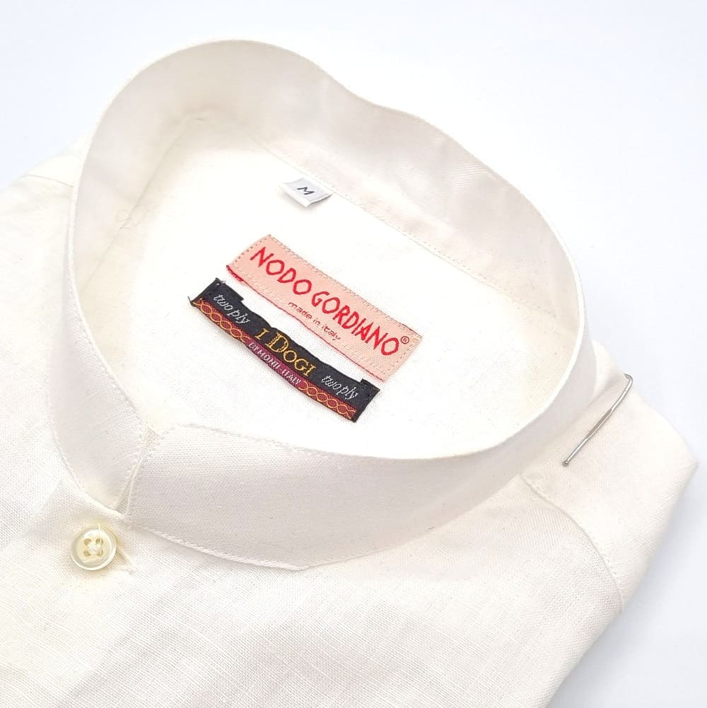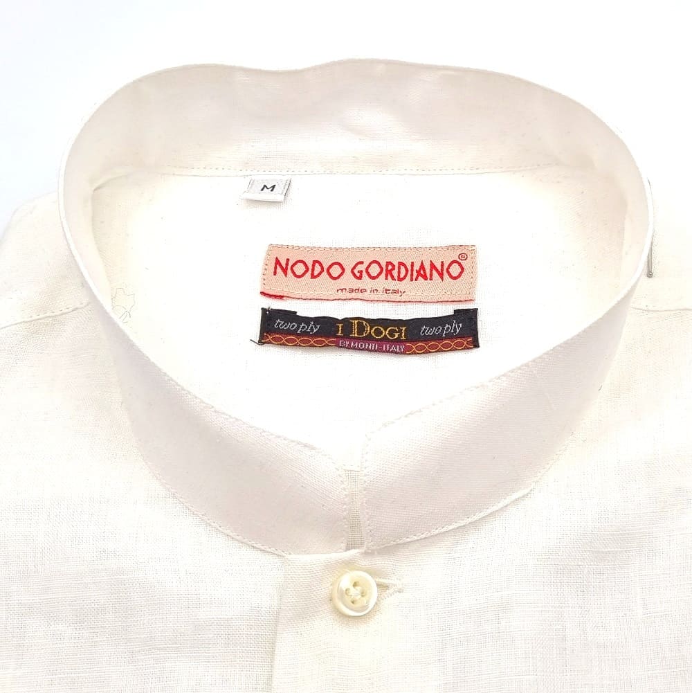 Camicia bianca con collo coreano originale, mezza manica, 100% lino egiziano Superior.