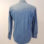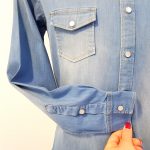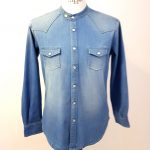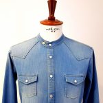 Camicia coreana Fradi jeans delavè bleach washed celeste – facile stiro -.