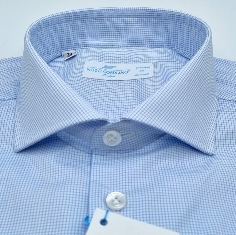 Camicia quadretto celeste francese in cotone makò superior (Tessitura Monti).