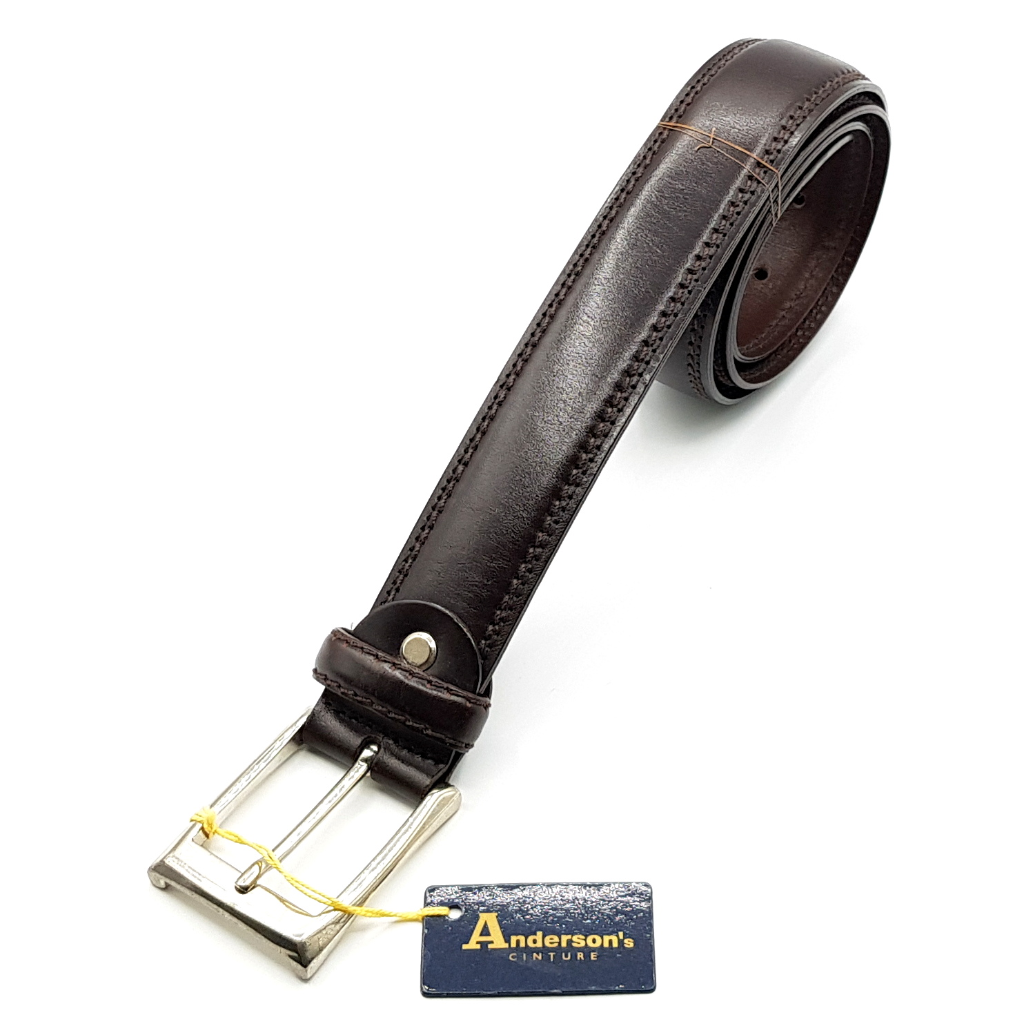 Cintura in pelle Anderson’s, testa moro liscia, doppia cucitura. Prezzo di listino €75 (prezzo stock 12€.