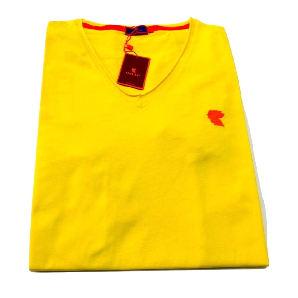 T-shirt Gallo uomo gialla, scollo a V 100%, taglio laser, della linea Gallo collection adatta al look di ogni giorno.