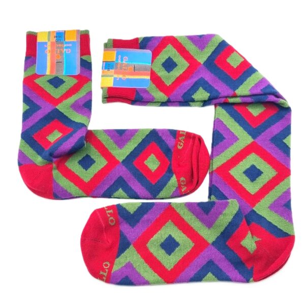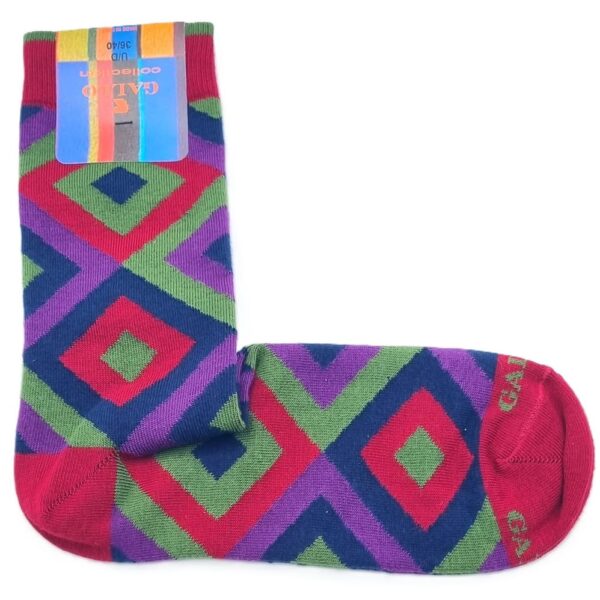Calze corte donna Gallo collection Fantasia Geometrica multicolor Quadri Rombi, color Amaranto Verde, Glicine Blu. Caldo cotone, con rimaglio fatto