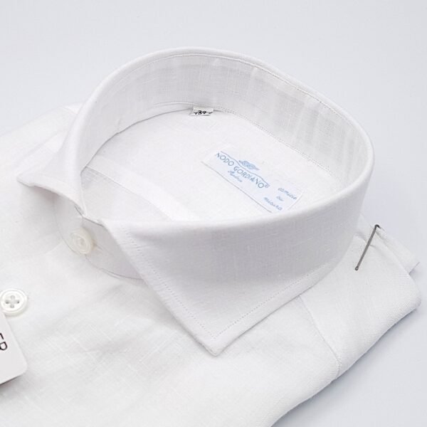 Camicia bianca con collo francese mezza manica, piegone militare con taschini eย 100% lino egiziano Superior. Composizione: 100% puro lino