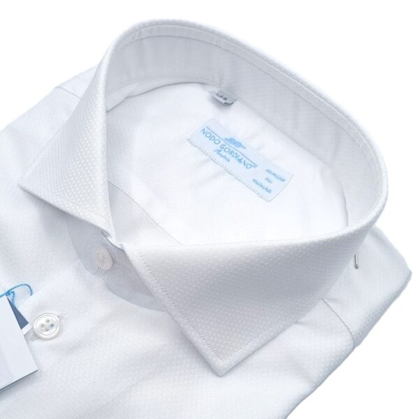 Camicia Bianca Collo Francese Pois Jacquard Cotone Makò Super 120’S tess. Monti